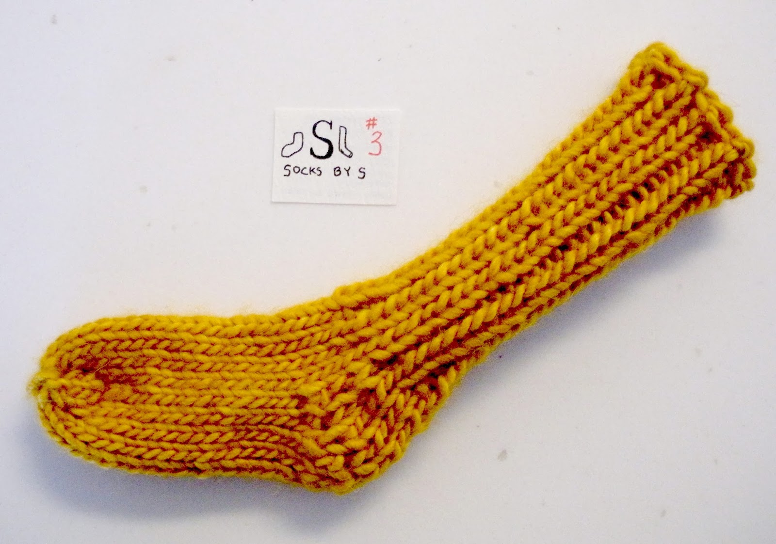 This sock is for Aaron. I used metal #6 circular needles in magic loop mode with The Fibre Company’s Organik (70% merino, 15% baby alpaca, 15% silk), which recommends #8 needles. This produced a nice tight stockinette pattern.